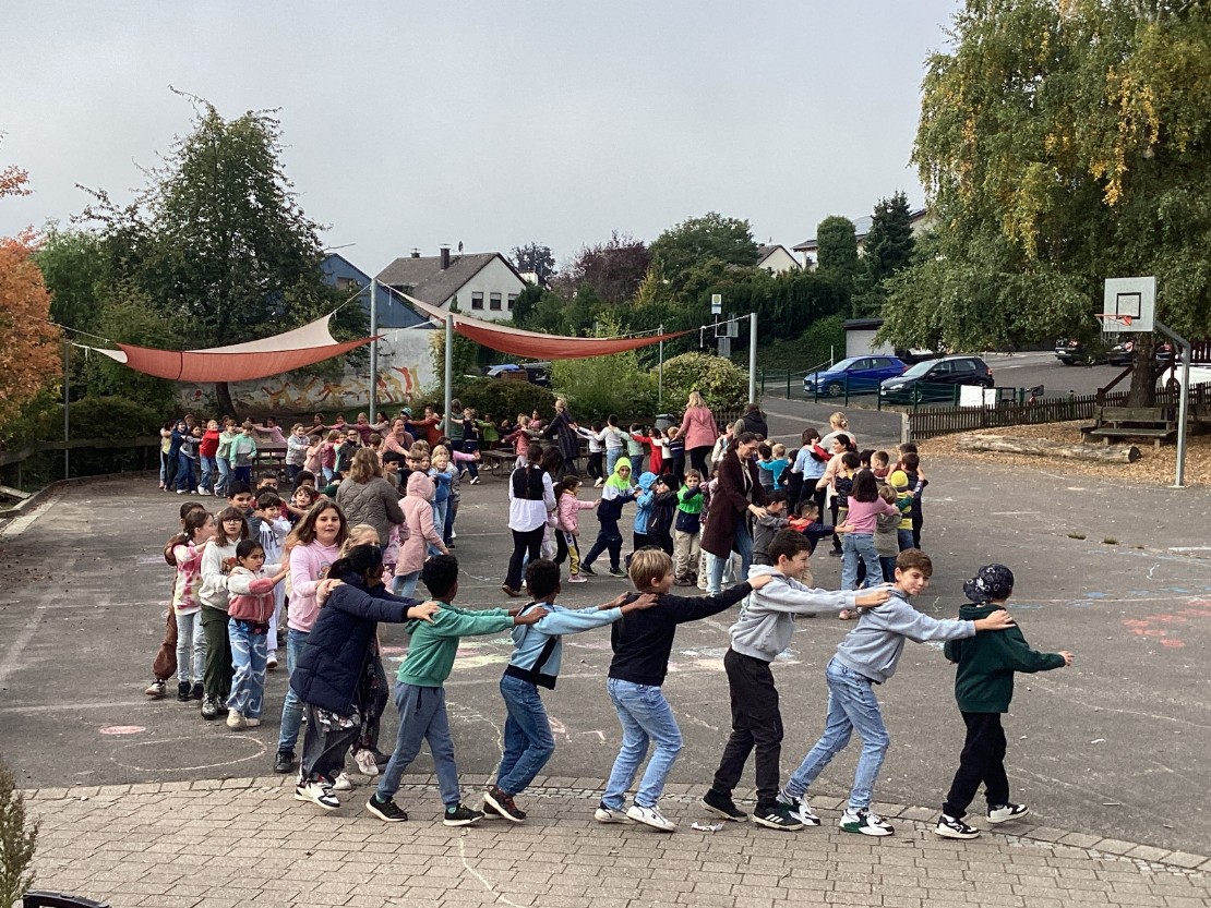 Auch wir haben zu einer gemeinsamen Bewegungspause mit Musik aufgerufen, bei der die ganze Schulgemeinschaft zusammen tanzte. Lehrerinnen und Lehrer machten genauso mit wie die Kinder- und schnell war klar: Bewegung verbindet!